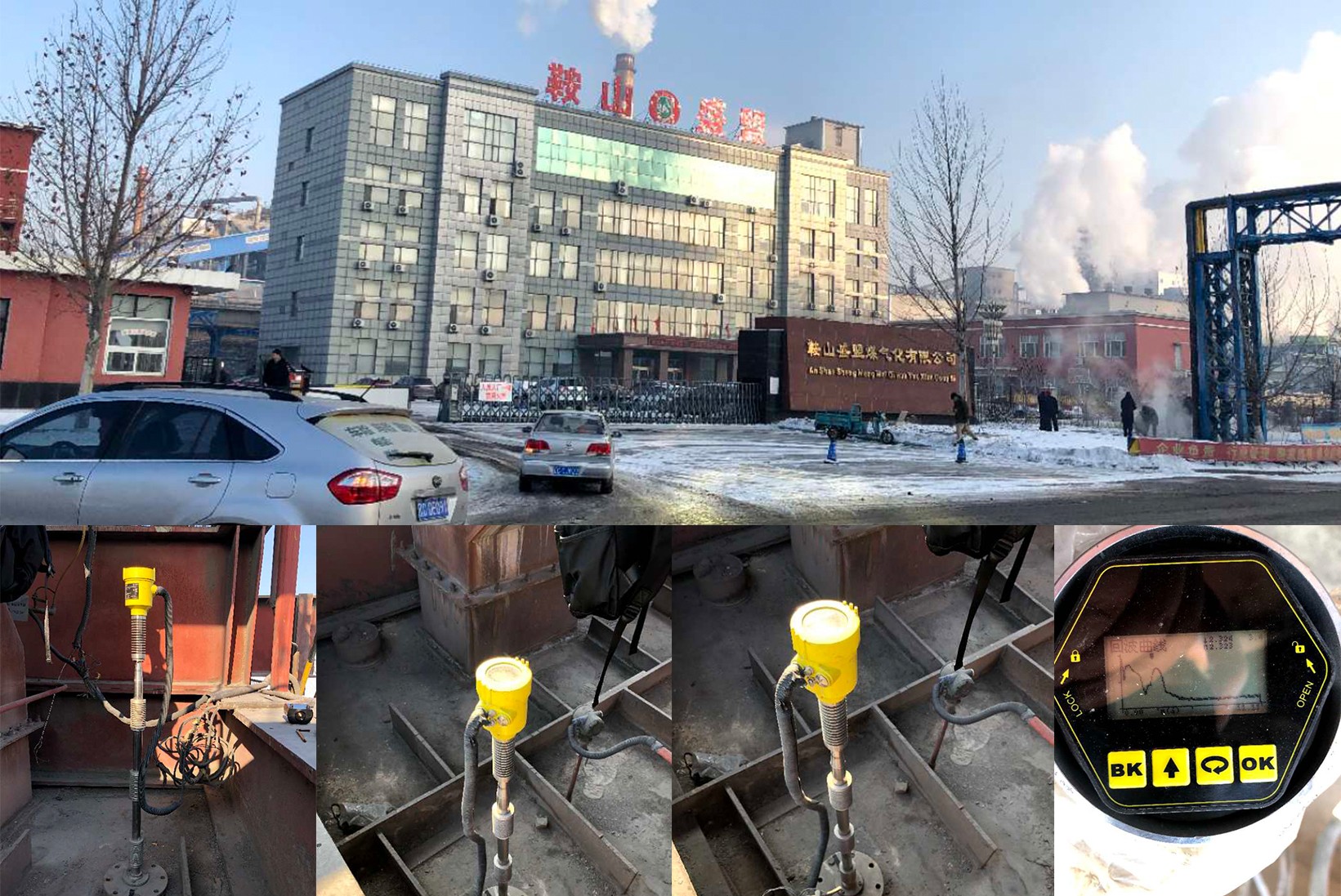 • 山東鋁業該現場主要主要以測量污水、水泥漿液為主,大多部多有攪拌、蒸汽,選購 RBRD17 共計 32 臺。罐內有攪拌槳,攪拌槳一下液位無法測量,因雷達安裝正下方是有攪拌葉片,且葉片寬度、層數比較多,所以無法測量。現場蒸汽比較大。現場安裝圖?,F場安裝圖,安裝位置為罐子直徑四分之一處?,F場安裝圖。現場環境圖?,F場安裝圖